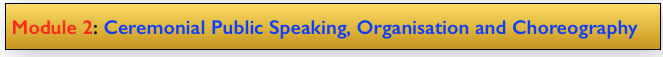 In Module 2, Ceremonial Public Speaking, Organisation and Choreography, we give the student a grounding and awareness of the essential practical skills needed by a successful celebrant. And there are certain principles of organisation and structure that are common to the creation and co-creation of any personal ceremony.
